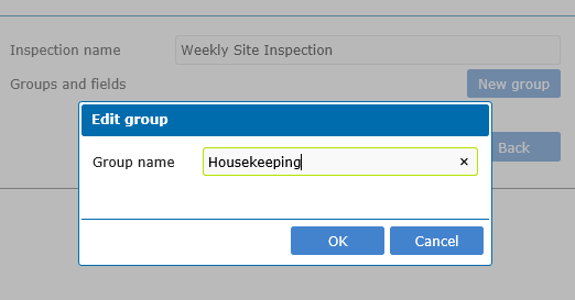 2. Select New Template and add the name of your new inspection template. For this example we used Weekly Site Inspection.