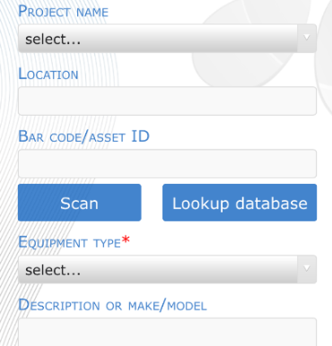 On selection of the edit icon the following fields are displayed. Note that Project Name, Location, Bar code/asset ID and Chemical list type are fields that cannot be deleted as they are required for the register database.