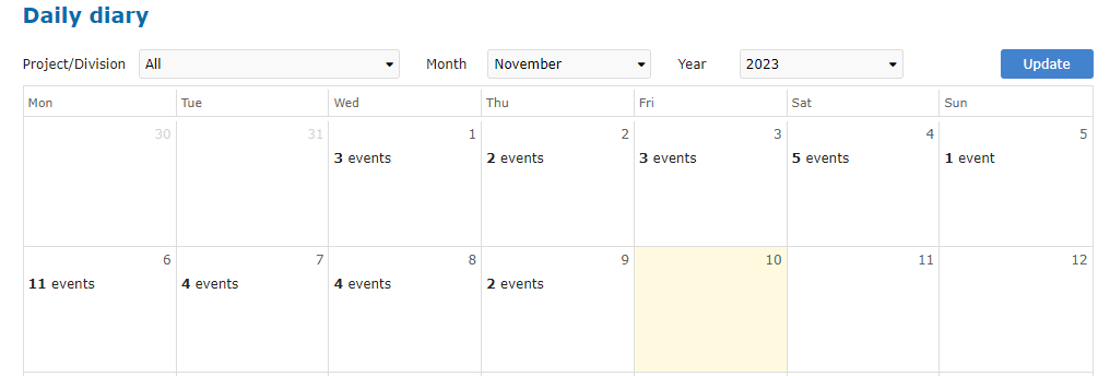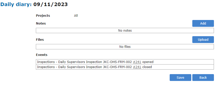 - Make notes of events on the day -shows who made the note and to which project/division it applies