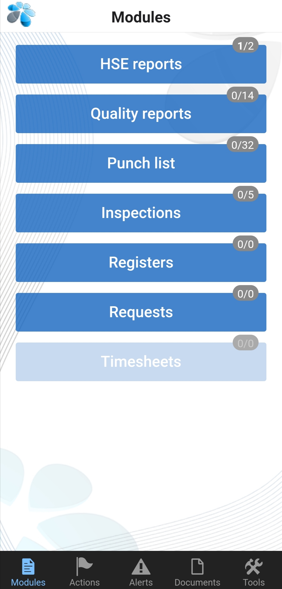 - Health, Safety & Environmental module - keeping your people and the environment safe.