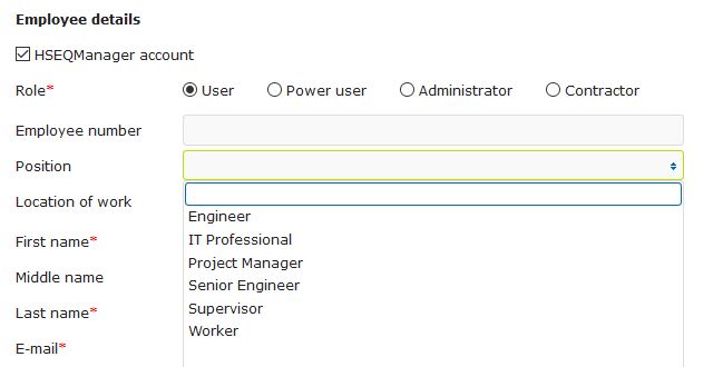 At the top is a tick box - select this if the employee is to participate in HSEQ Manager as an account holder. When ticket this employee will count towards your subscription amount.