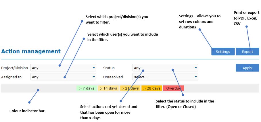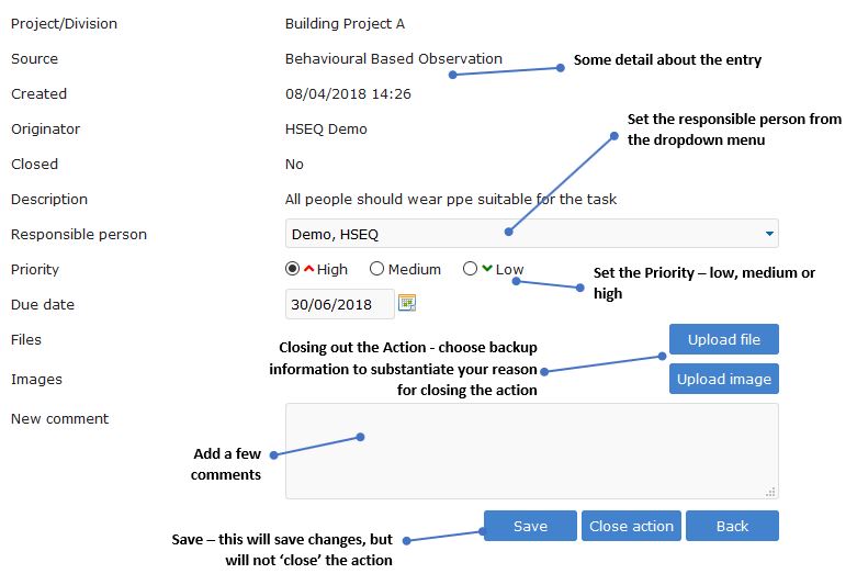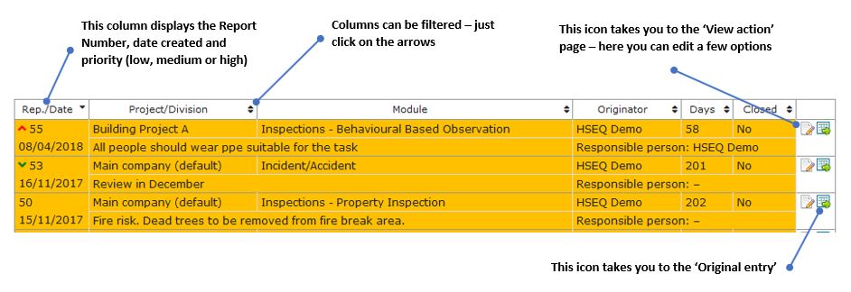 Action management is designed to help you close out open or risky items that were captured during your health, safety, environment or quality inspections. Here are the key element on the front page.