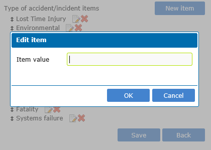 The scroll fields in each of the modules can be set or changed. The fields for HSE and Quality modules can be changed under each module. Please note that changing these fields will affect all older reports already created.