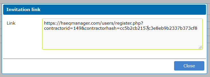 Your organisation will be able to link with a contractor by sharing an invitation link with that company. Click on the button "Get invatation link" and copy the link to an email. Send this link to the contractor and once they are registered, you will be able to see their data for the project/division in which they operate.