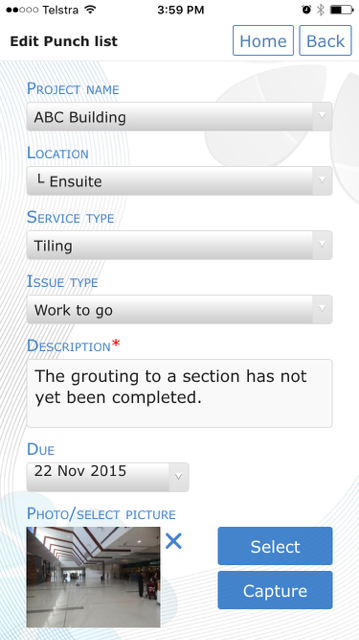 Type or speak your message into the defect description box (note that some phones do not support this function)