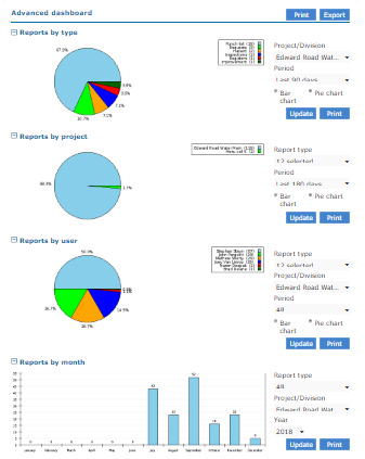 Turning data into intelligence  Dashboard provides organisational insight from the date captured. All modules contribute to the dashboard providing insight on critical information – such as trends on report by type, project, user, month, day, time of day, status. “HSEQ Manager” app Management system in your hand. The HSEQ Manager application is designed to allow the user to create any type of HSEQ report using a handheld device, in this case the iPhone, iPad and Android device. The design is based on the most commonly used procedures for health, safety, environmental and quality reporting. Considering industry requirements and responsibilities, it has become essential to record and report on all types of HSEQ events. This application will provide a secure and seamless way to record, create and manage reports. |