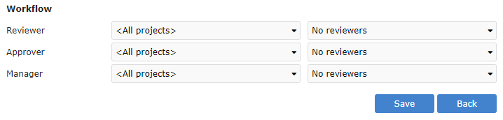 - Select All projects and add a "Reviewer" or select each project/division individually and select the reviewer for each.